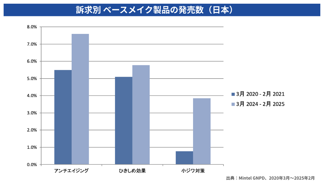 このトレンドの背景には、ひとつの製品で複数の機能を叶える時短・多機能ニーズの拡大に加え、処方技術・評価法・原料開発の進化によって、スキンケア技術の応用範囲が広がっていることなどが挙げられます。