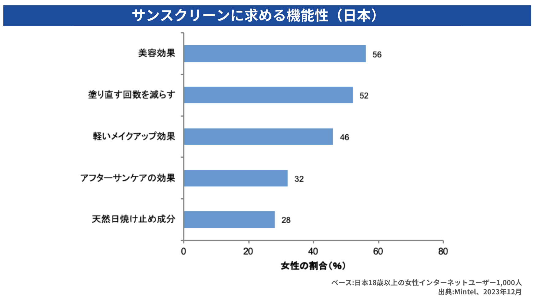 また、日焼け止め市場でも同様の傾向が見られ、単に紫外線を防ぐだけでなく、肌に優しく、美白やエイジングケアなどの美肌効果も兼ね備えた製品へのニーズが高まっています。