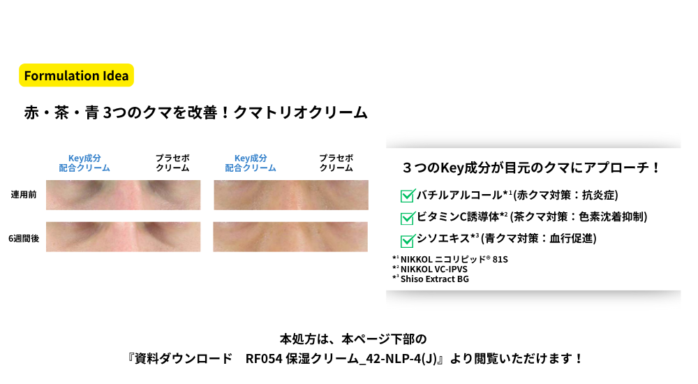 他にも、当社原料との組み合わせで青クマ・茶クマの改善も可能です。